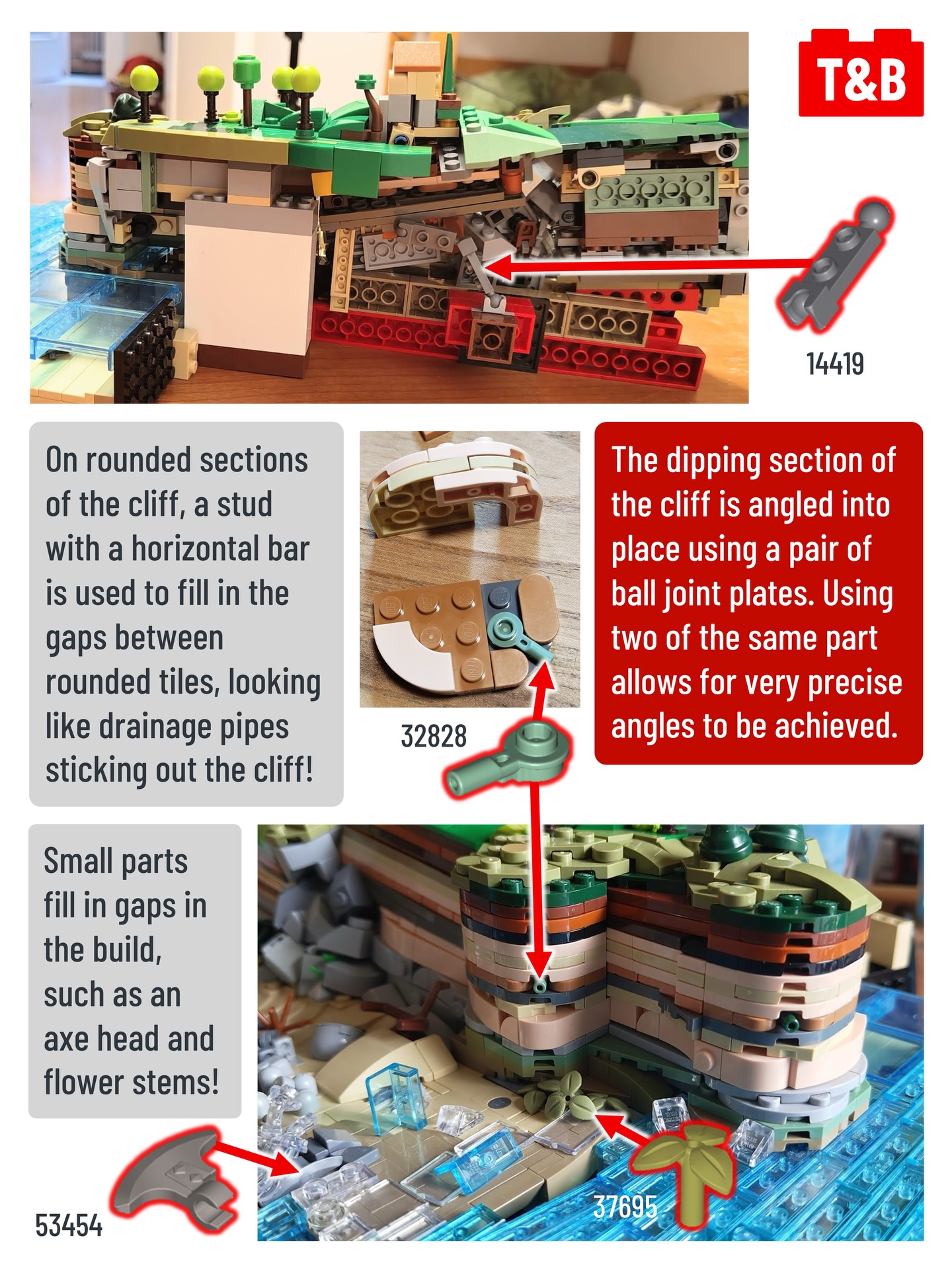 This amazing microscale coastal scene displays some surprisingly accurate and well recreated geology! In today’s post we’ll dive in to how this gorgeous landscape was built and all the ingenious techniques used in its construction! From using stud shooter triggers as rocks, to green bandanas as bushes, this MOC has it all!