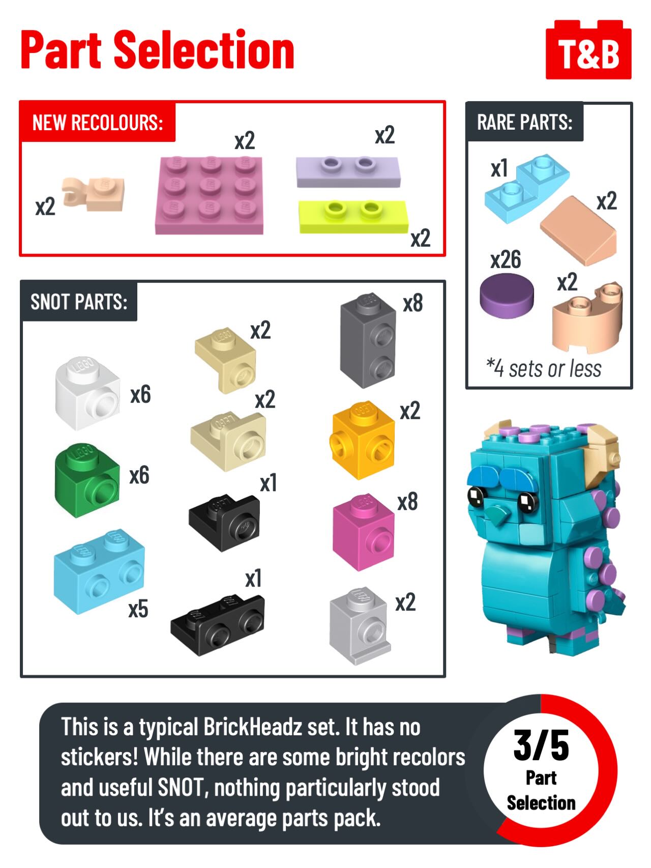 💚 Parts 3/5 – Average parts pack with lots of SNOT and some recolors.