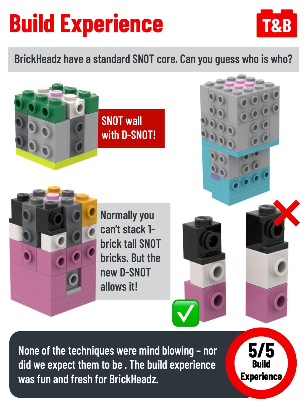 💚 Experience 5/5 – Some interesting SNOT stacking, and an enjoyable BrickHeadzbuild.