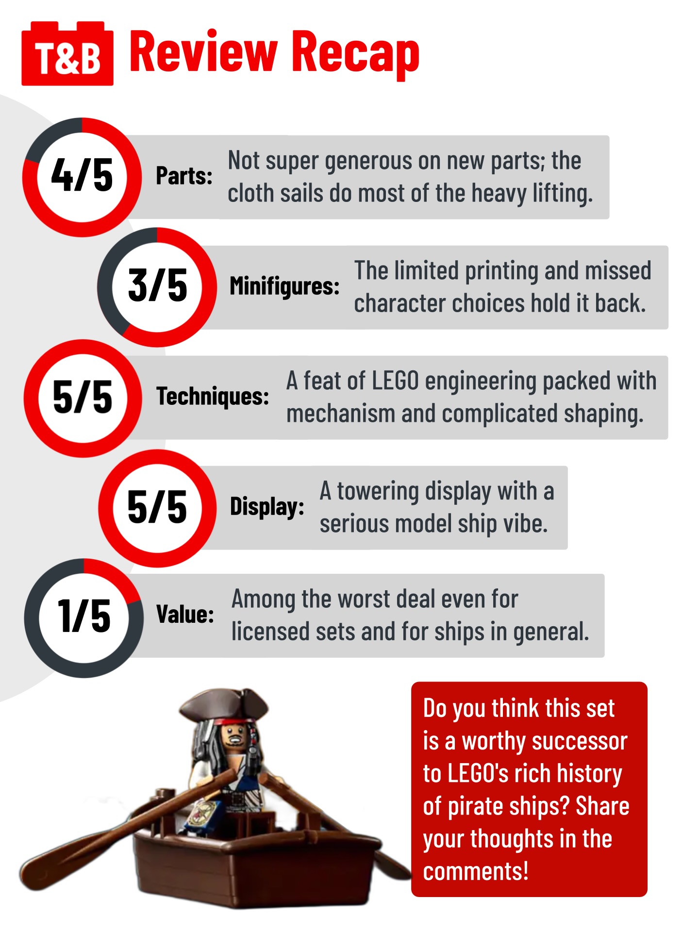 After a close look at the build, parts selection, and minifigure lineup, we landed on a final score of 18 out of 25. 👇