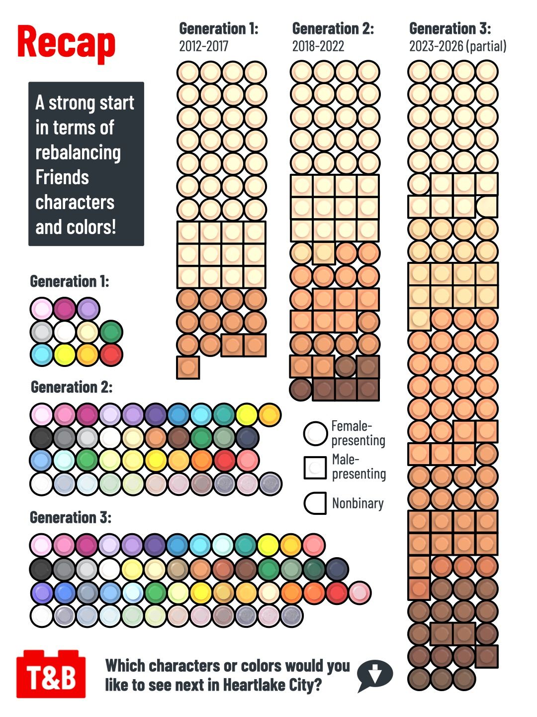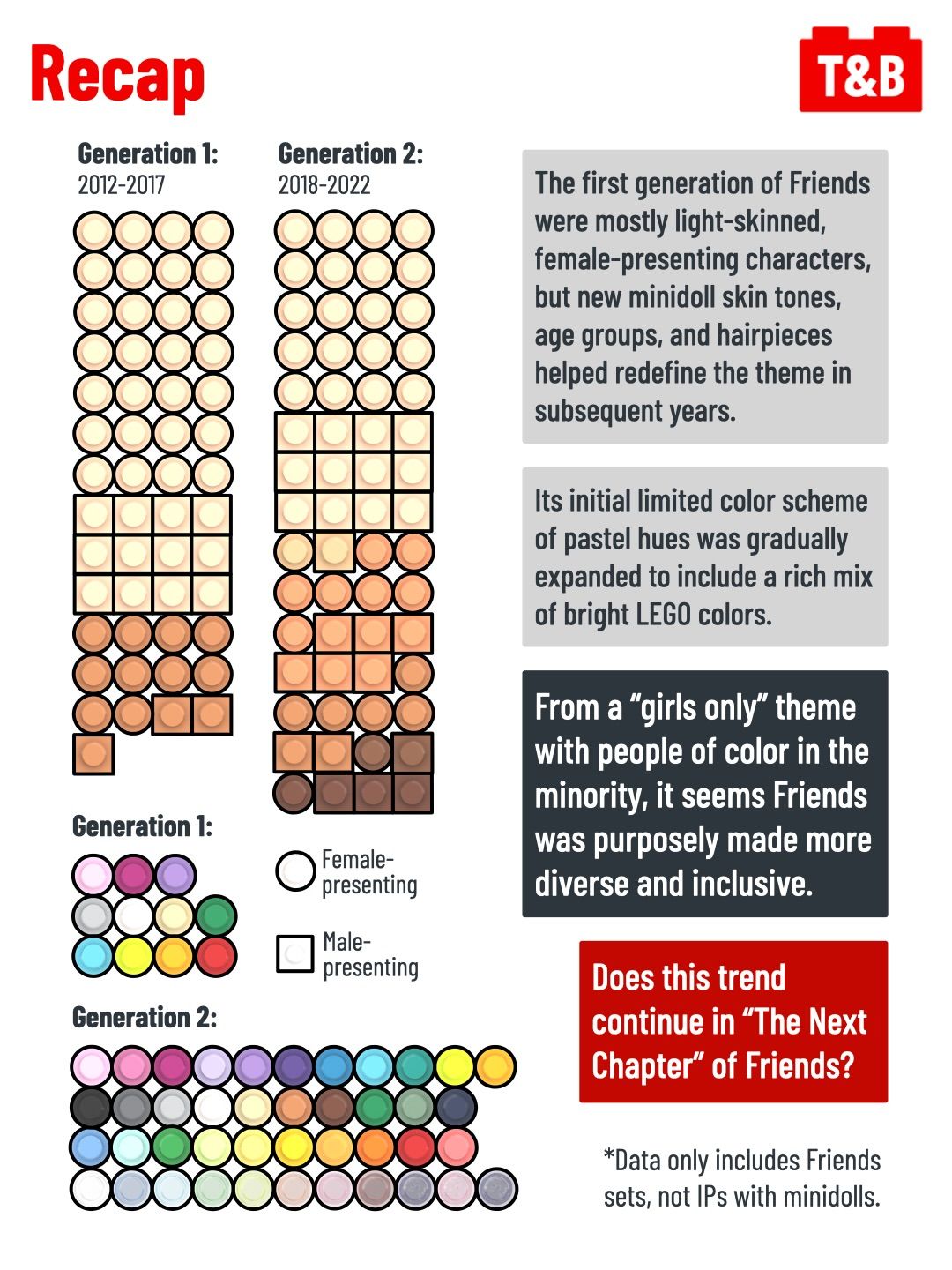 Characters and colors in Friends sets have changed significantly since the theme was first launched.