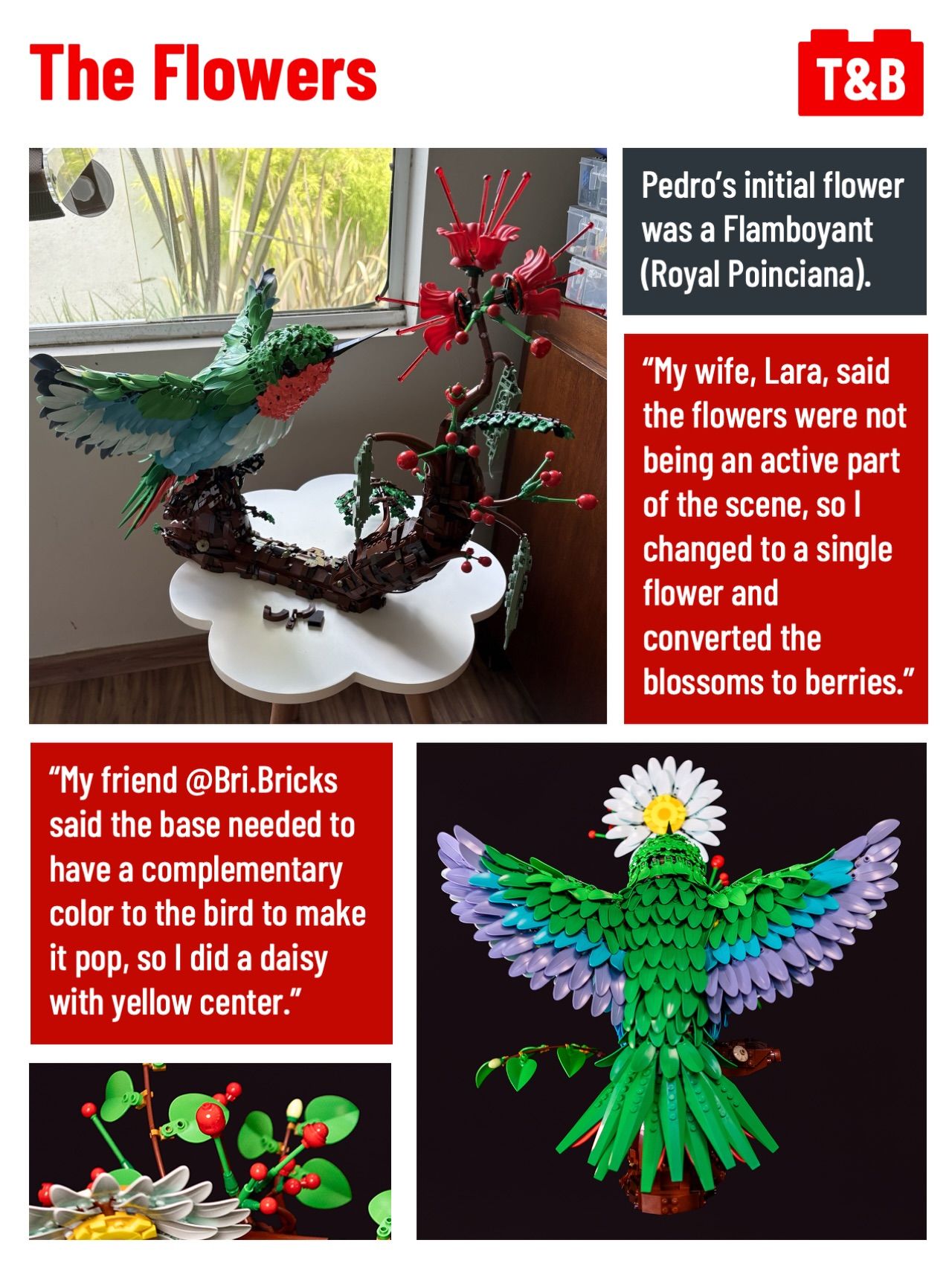 When @noble_studs saw the colors that the newer Mario leaf (3565) comes in, he knew he had to make a vibrant hummingbird. Let’s go behind the scenes and see how this hummingbird was constructed!