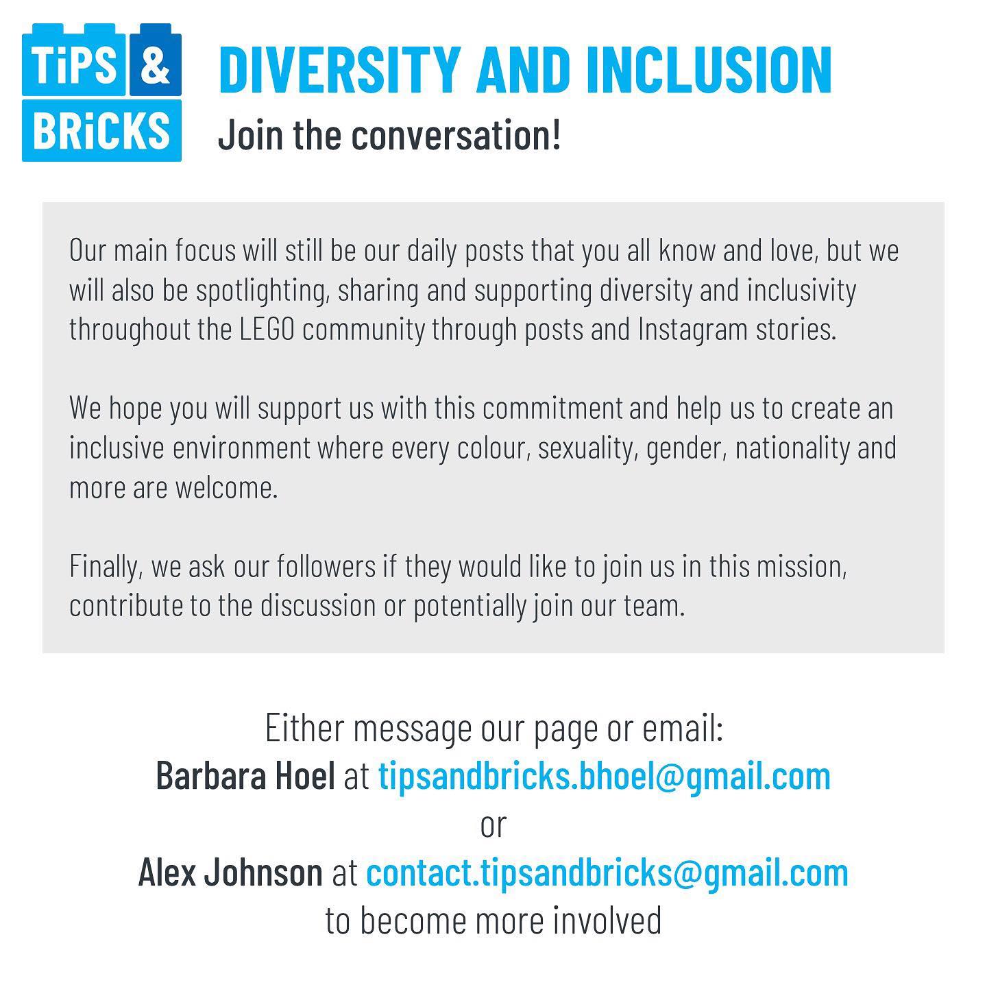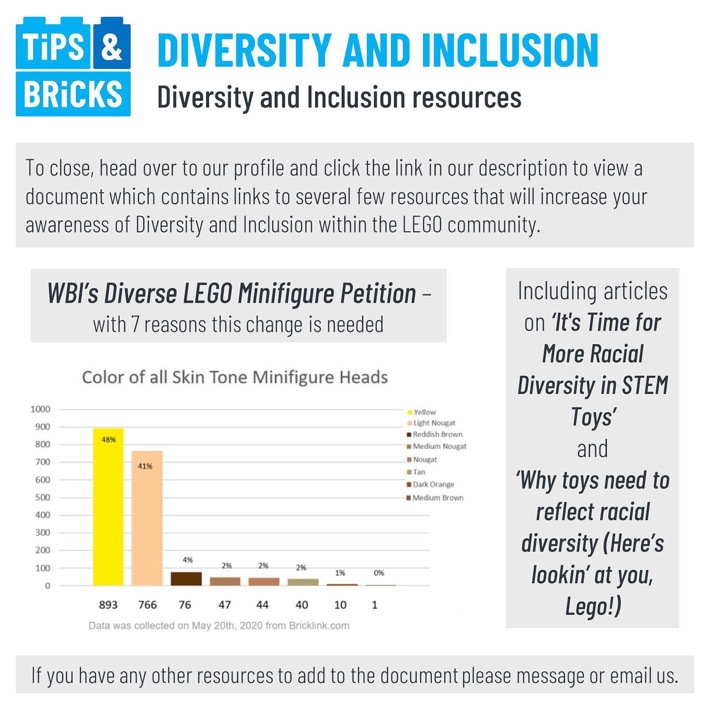 We have also put together a document containing resources for those wanting to increase their awareness of Diversity and Inclusion within the LEGO community (link in our bio @tipsandbricks )